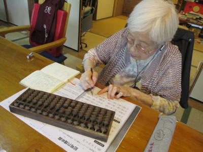 母は手帳に筆算したのちに、そろばんでも確認の計算・・・「ねがいましては~」