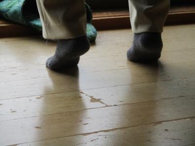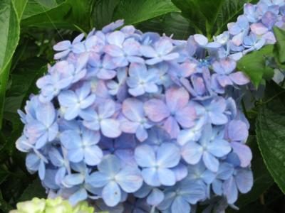 母は庭の紫陽花を見ながら踵上げ体操行っています