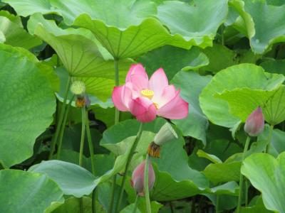 大きな蓮の葉っぱに見え隠れするたくさんの蕾も見れました。