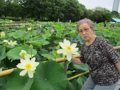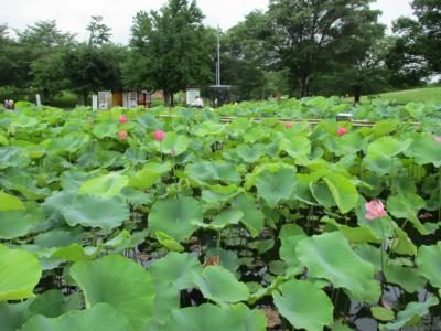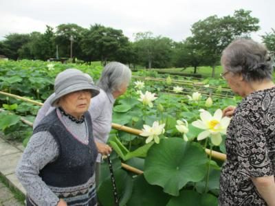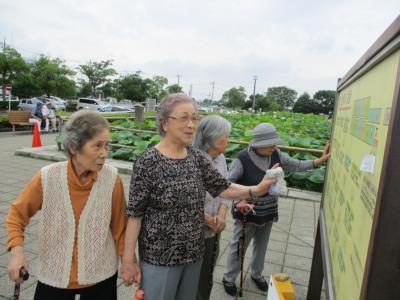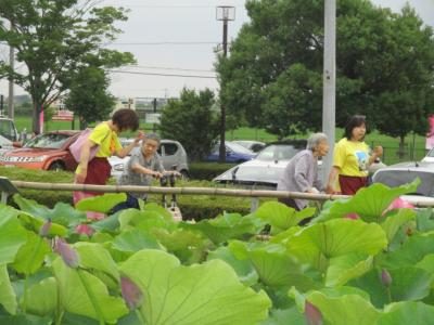蓮池を囲むように設置してある遊歩道を皆さんと歩き、色々な種類の蓮の花を楽しむ事が出来ました。