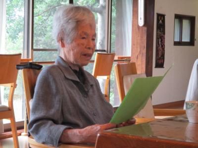 ぼけたらあかんの唱和は、一字一字しっかりと文字を目で追いながら、周りの皆さんと声を合わせながら、大きな声で唱和されています。