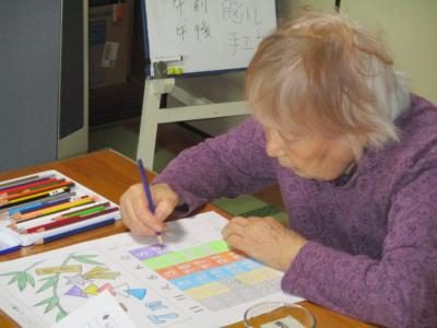 朝会の後は、脳活性の為の脳トレに取り組みます。