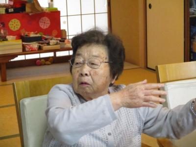ここの線がダメなのよ~とむずかしい筆使いに悪戦苦闘の母の声