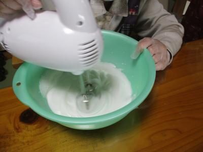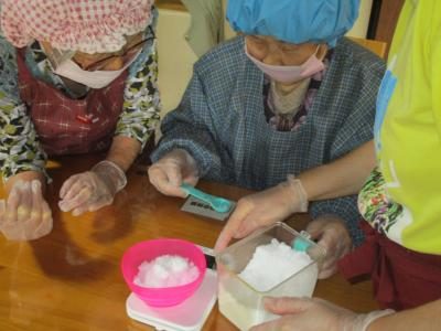 ケーキは計量がとても大切な作業です、母たち慎重にお願いしますね