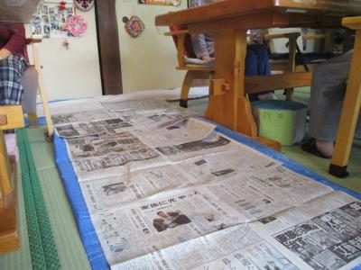 新しい畳を汚さないい様にレジャーシートに新聞を敷いて、準備オッケーです