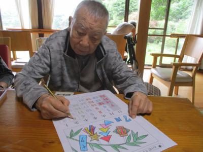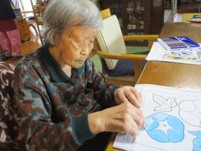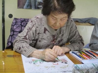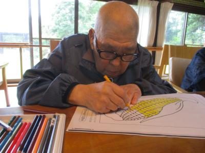 午前は、前回の続き塗り絵に取り組みます鉛筆