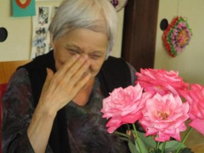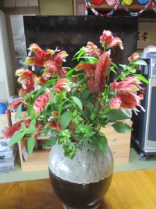 ホールには、ちょっと変わった花が花瓶に活けられています。赤い紙の衣を何枚も重ね着したような赤色の花穂をつけ、その形がエビの背中に見える事からコエビソウ(小海老草)と名付けられているそうです。  触ってみると質感も気持ちが良いとの声もありましたひらめき    愛の幸望庵には、薔薇だけでなく季節の様々な花々がいつも飾られており、皆様の目を楽しませて居ります✿  ❀   ✿