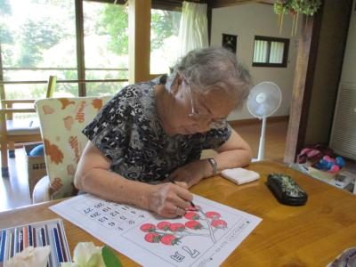 7月も、もうすぐ終わっちゃう~~あせあせ (飛び散る汗)と仰いながら、一生懸命にカレンダーの色塗り取り組まれる母達・・・  焦らなくても大丈夫ですよ(^_-)