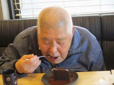 お父さんも又、美味しいチョコレートケーキに舌鼓ウィンク