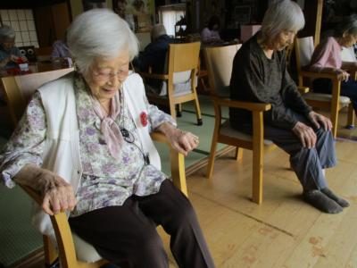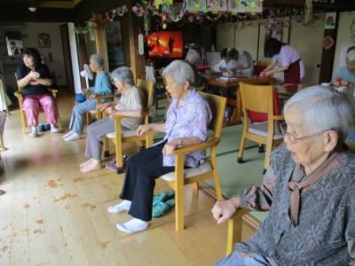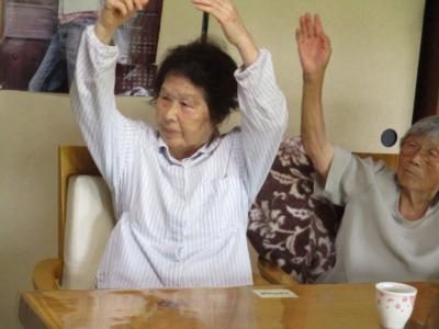 体操もしっかり声を出して、笑いと笑顔も忘れずに行います