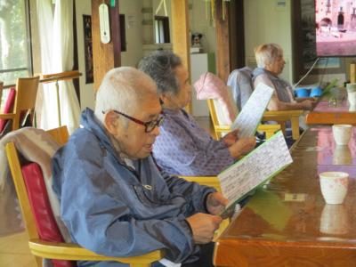 ぼけたらあかんでは、周りの方と読むスピードを合わせながら丁度良いペースで声を揃える皆さん・・・