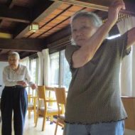 歌謡体操では、流れる曲と大画面のテレビに映る動きに合わせて身体を動かし体操します。  イキイキ ハツラツ リズム良く~~ムード