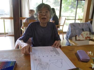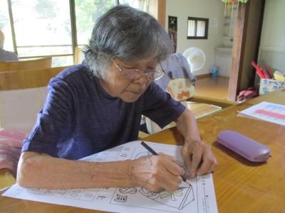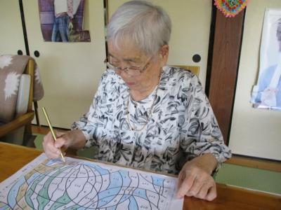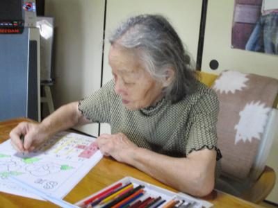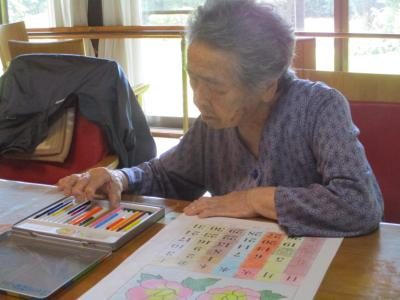 数字塗り絵に取り組む母は、指定の色を塗り重ねて行き・・・何何??何が出て来るんだろう??? と興味深々ほっとした顔   もう少し塗り進めると何が描かれているか出て来ますよ(^_-)  がんばって~~ウィンク