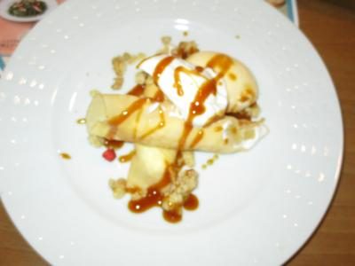 お母さんが召し上がっているのは、もっちもちのクレープ生地にリンゴのシロップ煮が蕩けそうなほどに美味しそうなアップル&キャラメルクレープぴかぴか (新しい)