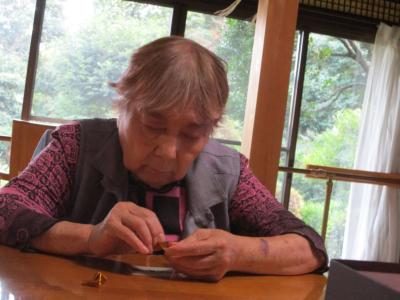 丁寧に縫っていく母