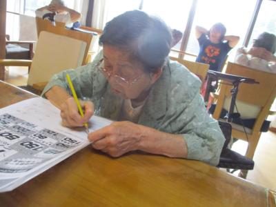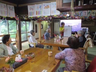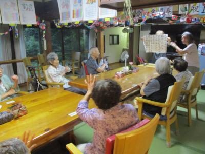 脳トレは買い物計算や時計クイズ、脱水〇☓クイズなど