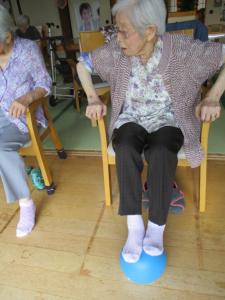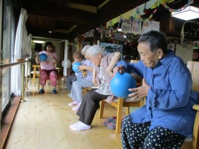 縁側では、上下肢の筋力アップに励む母達の姿が・・・