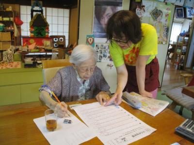 イキイキはつらつ歌謡体操で身体を動かし、朝会を終えましたら午前の脳トレを始めますよ~~