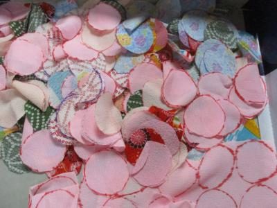 円形に切り抜かれたちりめん生地が沢山~~(@_@;)
