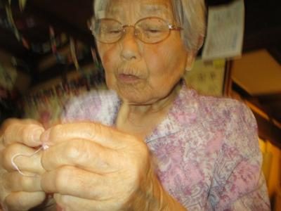 小さな針孔に、目を細めながら糸を通すお母さん。