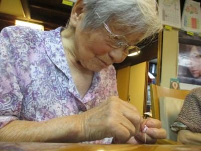 昔話を楽しまれながら、手先を休めずチクチク針を進める母達です。