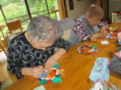 午後は作品展に向けて完成目指して手工芸に取り組みます