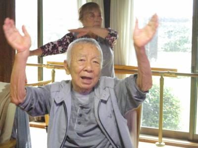 毎日、朝会で取り組む歌謡体操は、楽しく参加され微力ながらも皆さんの体力作りの一助になっているようです。