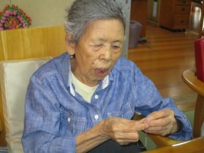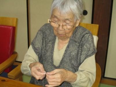 皆さん、慣れた手つきでチクチク見事な針裁きです。