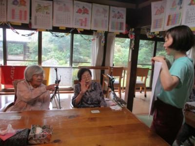 縁側で、楽しそうに皆さんで仲良く頑張っています。