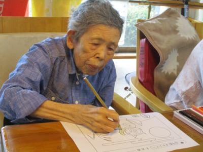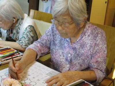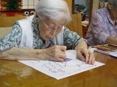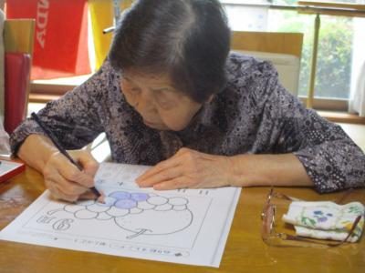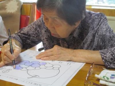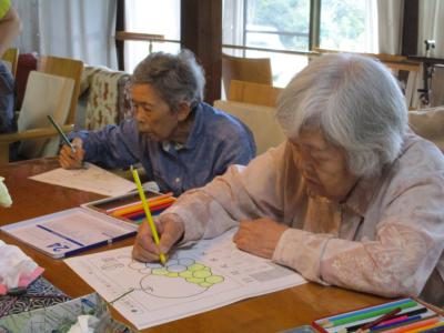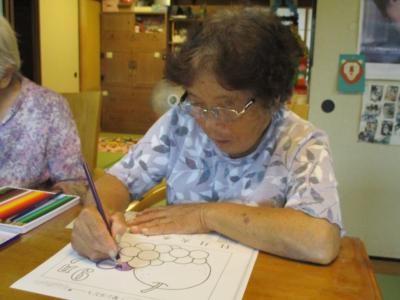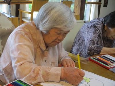 ひとたび塗り絵に集中されれば、皆さんどなたも集中され真剣に色塗りに取り組まれています。