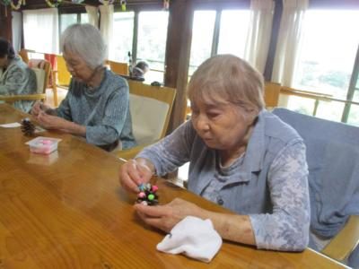 綿を丸めて行くお母さんは手を素早くクルクルクルッと丸め