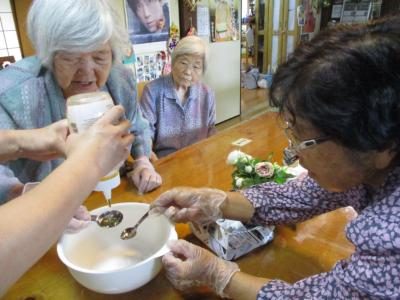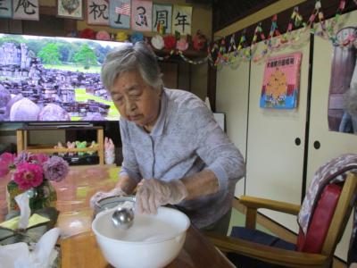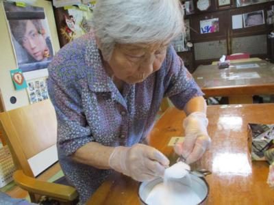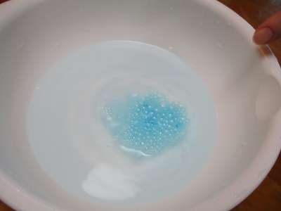重曹は10杯です! お隣でお母さんが数をカウントしてくれています