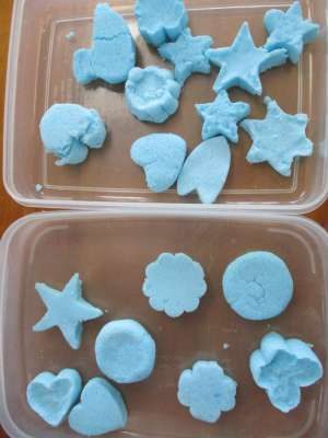 乾燥させると、作ったバスボムは硬くなるそうです。