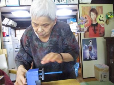ハンドルを回せば削れるの?? 昔はこんなの無かったから・・・と少々戸惑いながらハンドルを回す母でした