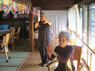 音楽体操でしっかり身体を動かしていきます