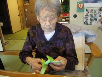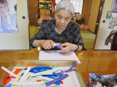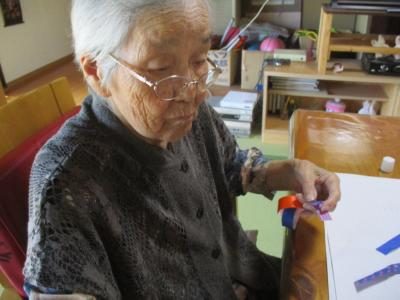 母には輪飾りの紙を切り分けて頂いています