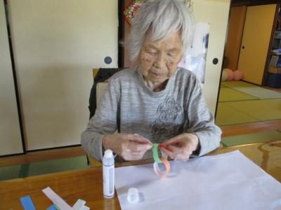 輪飾りの色も皆さん隣同士の色バランスを考えながら作っています