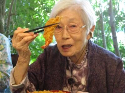 大きなエビフライを、大きなお口で頬張るお母さん(*^_^*)