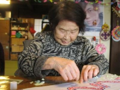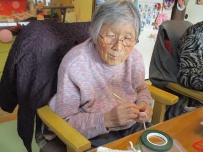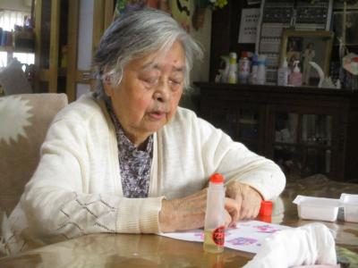 スタッフの優しいアドバイスを受けながら、塗り進める母・・・