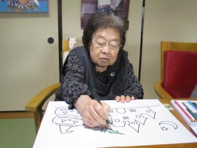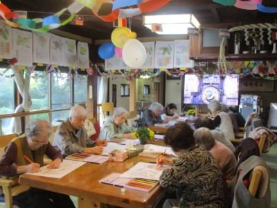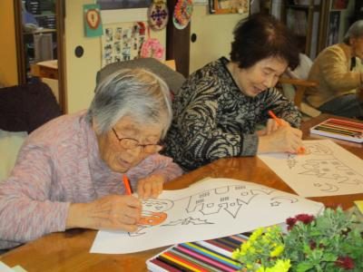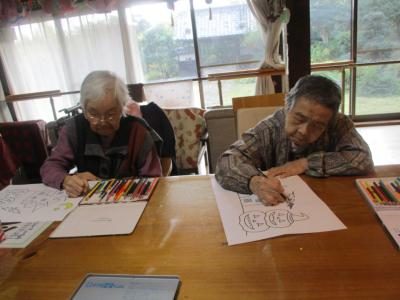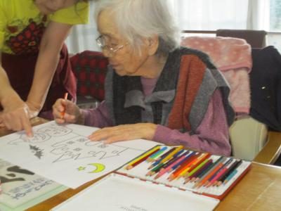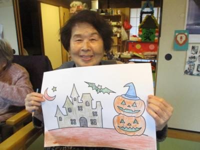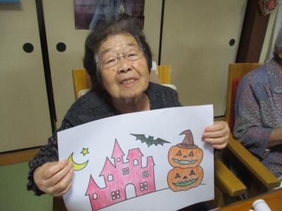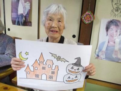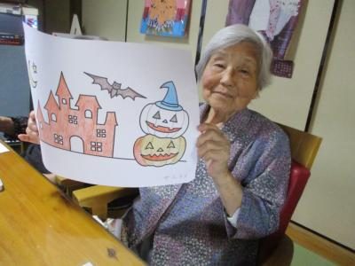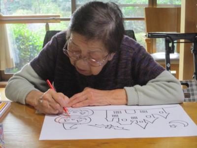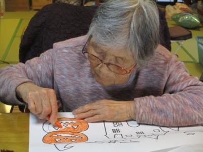 皆さんにとっては、あまり馴染みのない行事の様でしたが、かぼちゃのオバケと言うフレーズを出すと、『あ~~!あれね~!』と早速塗り絵に取り組みスタートです