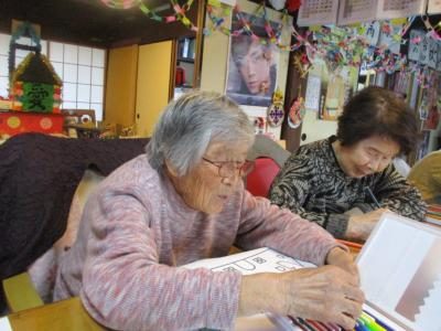 悩みながら色を選び、取り組む母・・・色選びも塗り絵の醍醐味ですね~