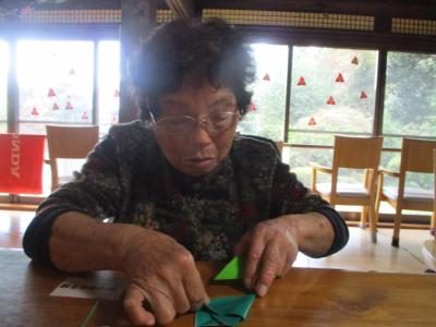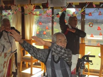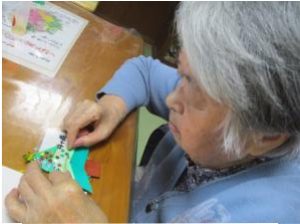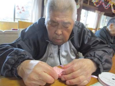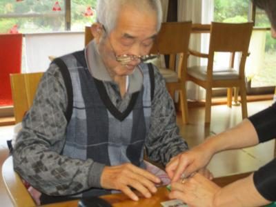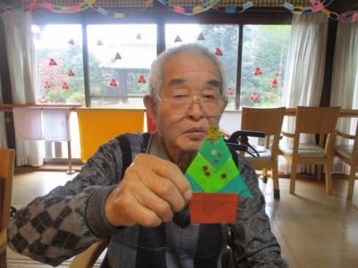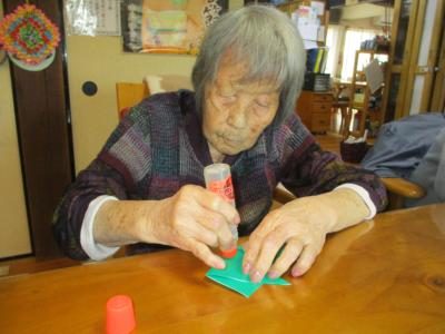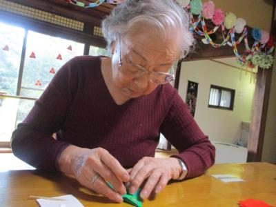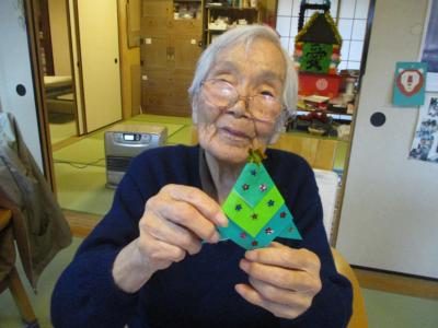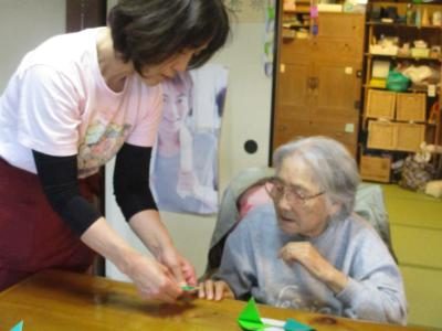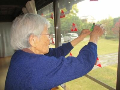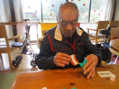 スタッフの邦ちゃんの指導の下、クリスマスツリー作り