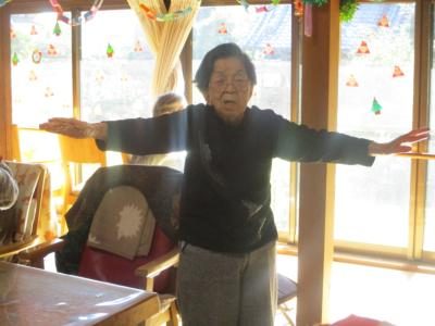 歌謡体操でしっかりと身体を動かしました手 (グー)わーい (嬉しい顔)手 (グー)