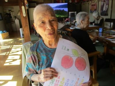 母のリンゴも美味しそうに塗れました