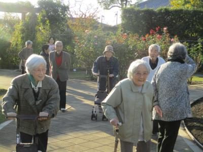敷地内を、仲間と楽しく散策する皆さんもまた飛び切りの笑顔足 足 足 足