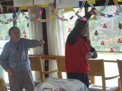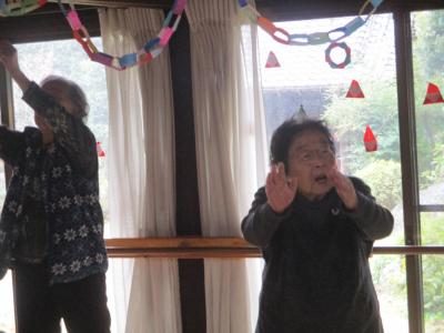 歌謡体操でしっかりと身体を動かしました手 (グー)わーい (嬉しい顔)手 (グー)