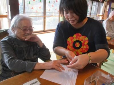 機能訓練の合間に母の爪きりをしてくれました