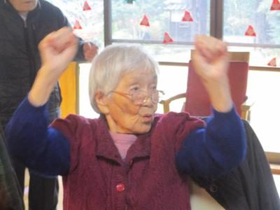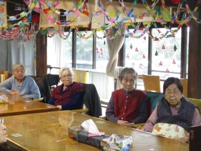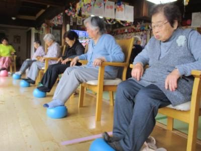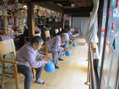 縁側では、お庭を眺めながら体操に取り組む母達の姿・・・