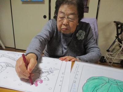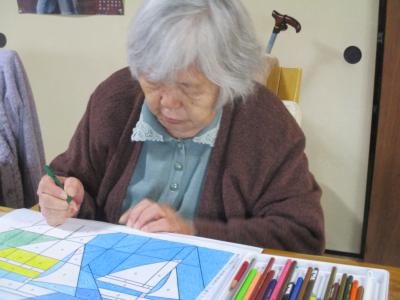 各々、塗り絵の世界に引き込まれながら、時間を忘れ没頭されていました。