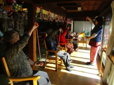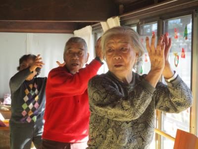 日なたでぽっかぽかの中の機能訓練は身体もしっかり動いています